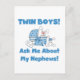 La orgullosa nueva tía o tío de nuevos sobrinos gemelos amará nuestras camisetas Ask About My Nephews Twin Boys, hoodies, mugs, tarjetas, pegatinas, bolsos de tote, botones de invitación y otras prendas y regalos de sobrinos gemelos.