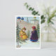 Postal Dos niños y árboles de Navidad bajo las paredes