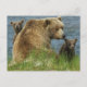 Postal Dos oseznos marrones con madre junto al agua