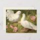 Esta tarjeta postal presenta una ilustración vintage de dos palomas y rosas. Se puede utilizar para Pascua o cumpleaños, aniversarios, salvar la fecha, compromisos, etc.