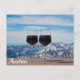 Dos copas de vino tinto contra el fondo de la montaña. Vista de los picos nevados en las montañas.