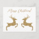 El venado de Destei se forma en una textura falsa de purpurina amarillo dorado. Los dos ciervos se enfrentan entre sí y hay un área de texto personalizable que ahora dice: "¡Feliz Navidad!". AVISO: El diseño es una imagen creada digitalmente que se imprimirá en el producto.