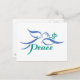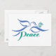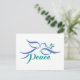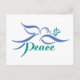 Ilustracion con tarjeta de saludo de una paloma de paz que lleva una rama de olivo.
