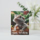 Un pequeño lagarto divertido en el jardín de musgo con las palabras Feliz Cumpleaños
