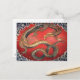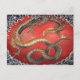 ilustración japonesa vintage de un dragón sobre fondo rojo con olas azules