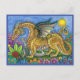 POSTAL DRAGÓN MEDIEVAL Y JÓVENES, COLORIDOS JARDÍN DE ART