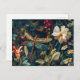 Postal Dragonfly en un jardín con Daisies y Lilies Illu