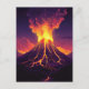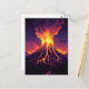 Una representación poderosa y dramática de un volcán en erupción, con lava fundida cayendo en cascada por sus laderas y espesa nube de humo en el cielo. El intenso contraste entre rojos y naranjas feroces y rocas volcánicas oscuras crea una escena impresionante y enérgica.
