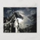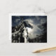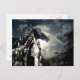 Una bella escena de un cementerio con una cripta gótica y un oscuro y dramático cielo en una postal. estilo gótico bonito.