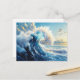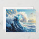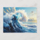 En esta impresionante escena costera brilla una ola oceánica potente y deslumbrante que brilla con la luz del sol dorada y el brillante aerosol. La imagen, pintada en tonos azules vivos y pasteles cálidos, refleja la energía dinámica del mar con un estilo de pintura.