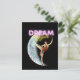 Diseño divertido y fortalecedor con fotos tintadas vintage de bailarina de ballet, luna creciente decorada con flores y texto de neón "ensueño más grande" sobre fondo negro