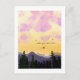 Send a heartfelt touch of wanderlust with this beautiful “Wish You Were Here…” postcard! Featuring a soft, dreamy watercolor landscape of majestic mountains silhouetted against a vibrant sunset sky in shades of pink, peach, lavender, and golden yellow. Wispy clouds drift above, while a flock of birds soars gracefully over lush evergreen forests—evoking that perfect sense of peaceful escape and longing to share the moment.