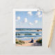 Deze rustige scène toont een vrouw die alleen op het strand zit en naar de zee kijkt. De golven rollen zachtjes tegen de kust onder een blauwe lucht met donzige wolken. De duinen omkaderen de horizon, een intieme en serene sfeer van dit mooie strandtafereel. Ze droomt over de toekomst en overdenkt haar leven, misschien genietend van een moment van rust en ontsnapping uit de dagelijkse drukte. Haar gedachten dwalen af naar verre oorden en nieuwe avonturen, terwijl ze de kalmerende invloed van de zee op zich laat inwerken.