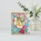 Elegante, colorido y vibrante diseño floral estilo vintage con un bebé y una cigüeña volando entre hermosas rosas románticas rosadas, rojas y flores primaverales azul teal por Bulgan Lumini (c).