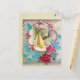 POSTAL DUCHA DE BEBÉ CIGÜEÑA AMARILLA, ROSAS ROSADAS, FLO