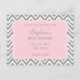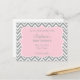 Patrón de chevron gris y blanco con acento rosa pastel para tarjeta de aviso de baby shower. Zig-zag gris y blanco y en el medio hay un rectángulo rosa pastel con tu texto personalizado.