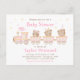 Esta linda y caprichosa invitación para ducha de bebé cuenta con un tren acuarela en rosa pastel, amarillo y marrón con adorables ositos bebés. El texto combina letra manuscrita y fuentes serif para una apariencia elegante y moderna. Esto es perfecto para una ducha de bebé con tema de osos o trenes.