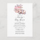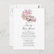 Invitación de baby shower o boda de conducción con un antiguo coche deportivo adornado con rosas de acuarela rosa personalizable a los detalles de su evento.