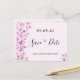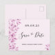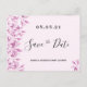 Una elegante y sencilla tarjeta Save the Date para una dulce fiesta de cumpleaños 16 y 16. Una moda de fondo rosa rosa y rosa decorada con flores botánicas color rosa y morado. Plantillas para una fecha y nombre/edad 16. Letras de color negro. El texto: Save the Date se escribe con un gran guión de estilo escrito a mano. Sugerencia: Si no desea que se vea como una postal, haga clic en personalizar, vaya a la parte posterior y quite el separador y el sello postal.