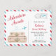Invitación temática de viaje "La aventura espera" en azul y rojo. Esta invitación es una postal real que se puede enviar por correo sin sobre. También puedes pedirla como reverso decorativo. Esta y otras diseños coincidentes se encuentran en mi Colección de Aviones de Viaje en Rojo y Azul