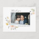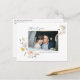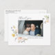 Nuestra encantadora tarjeta fotográfica de agradecimiento boda está diseñada con flores rosadas, verdes, naranjas, bayas y hojas con un hermoso tipo de letra de guión. El lado inverso tiene un mensaje preescrito y cambiable. Con una pequeña flor en el fondo. Kimberly Brett.