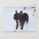 Postal Dulce Bulldog francés negro le gusta la nieve