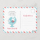 "La Aventura Espera" invitación temática de viaje en azul y rojo. Esta invitación es una postal real que se puede enviar por correo sin sobre. También puedes pedirla como reverso decorativo. Este y otros diseños coincidentes se encuentran en mi Colección de Aviones de Viaje en Rojo y Azul