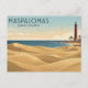 Captura la elegancia atemporal de las Islas Canarias con esta ilustración de viaje minimalista de estilo vintage en una postal. Con las icónicas Dunas de Maspalomas y el histórico faro de El Faro, esta obra de arte encarna la "Primavera Eterna" de las costas meridionales de Gran Canaria.