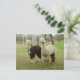 Una alpaca negra y blanca (esmoquin) y una alpaca gris rosa se posan juntos en esta hermosa postal