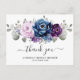 Elegante espliego azul polvoriento lavanda de lila púrpura tema floral ducha de novia gracias a la postal que presenta elegante ramo de azul polvoriento, Marina, púrpura, flores de rosa de color lila y hojas de eucalipto verde salado. Comuníquese conmigo para obtener ayuda sobre la personalización o si necesita cualquier otro producto con este diseño.