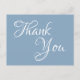 Mensaje de caligrafía blanca personalizable: "¡Gracias!". Postal azul grisáceo o azul polvoriento y blanco. Una fuente de moda para bodas, duchas de novias y bebés y otros eventos. Color de fondo y fuente personalizar.