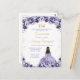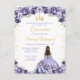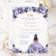 Esta elegante y glamurosa invitación de cumpleaños de Quinceañera presenta a una hermosa princesa con cabello oscuro en un vestido de baile de dusty purple. El texto combina la escritura a mano y las fuentes modernas sans serif para un look clásico y sofisticado. Los arreglos florales y el confeti dorado crean la mezcla perfecta de rústico y chic.