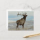 Tarjeta postal del alce toro Lucky 13. Este enorme y viejo alce toro con trece puntos en su enorme cornamenta está llegando al final de sus años "primordiales", pero todavía tiene una figura intimidante mientras se pavonea orgullosamente sobre las llanuras nevadas.