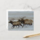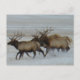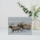Tarjeta postal de alce toro. Los toros de alce corren por la nieve en las praderas de Alberta, los alces pueden moverse muy rápido y pueden cubrir muchas millas en un corto tiempo.