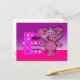 Elefante personalizado dulce con letra E en tonos rosa y violeta, postal.