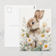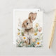 Postal Easter Postcard with Flowers and Easter Bunny