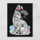 Conejo de Pascua oscuro y arriesgado con huevos y un sol con palmeras.