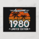 Este impresionante diseño de edición limitada del año de cumpleaños desde 1980 es un clásico divertido y atemporal gráfico retro vintage de tema de verano de estilo playera que es perfecto para mujeres y hombres que celebran un cumpleaños o para mostrar que están orgullosos de haber nacido en 1980. Cuenta con 'Impresionante Desde 1980 - Edición Limitada' año de cumpleaños en un gráfico clásico estilo retro atardecer de los 80. Impresionante diseño para cualquiera que haya nacido en 1980.