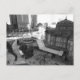 Una fotografía en blanco y negro que mira hacia abajo al histórico edificio de la Estación de Tokio Marunouchi y los rascacielos circundantes.