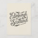 Diseño con letras a mano que presenta las palabras "Edimburgo" y "Escocia" en un guión elegante y fluido. Las letras se emiten con tinta negra sobre un fondo beige claro, creando un aspecto clásico y atemporal. El diseño es perfecto para postales, posters u otros materiales impresos.