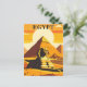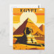 Una tarjeta postal de estilo vintage audaz de Egipto con la Gran Esfinge y las pirámides contra una puesta de sol del desierto brillante. Un coleccionable perfecto para viajeros, amantes de la historia y entusiastas de Egipto.
