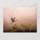 Egret volando en niebla al amanecer. Mirando sobre el estuario. frontiernow.com