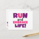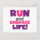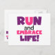 Si te gusta correr, correr 5 Ks, 10 Ks, media maratón o maratones, te encantará este colorido diseño de texto en morado y rosa que dice Correr y abrazar la vida! ¡Corre y abraza camisetas vitales, tazas, bolsas, tarjetas, pegatinas, cadenas de llaves, mousepads, estuches para iPhone, imanes y mucho más!