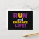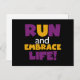 Si te gusta correr, correr 5 Ks, 10 Ks, media maratón, o maratones, te encantará este colorido diseño de texto en morado y amarillo que dice Correr y abrazar la vida! Corre y abraza camisetas de la vida, caramelos, imanes, botones, tarjetas, pegatinas, llaveros y muchos otros artículos para corredores que aman un diseño de ejecución brillante y colorido.