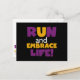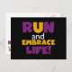 Si te gusta correr, correr 5 Ks, 10 Ks, media maratón, o maratones, te encantará este colorido diseño de texto en morado y amarillo que dice Correr y abrazar la vida! Corre y abraza camisetas de la vida, caramelos, imanes, botones, tarjetas, pegatinas, llaveros y muchos otros artículos para corredores que aman un diseño de ejecución brillante y colorido.