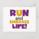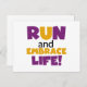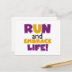Si te gusta correr, correr 5 Ks, 10 Ks, media maratón, o maratones, te encantará este colorido diseño de texto en morado y amarillo que dice Correr y abrazar la vida! Corre y abraza camisetas de la vida, caramelos, imanes, botones, tarjetas, pegatinas, llaveros y muchos otros artículos para corredores que aman un diseño de ejecución brillante y colorido.