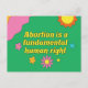 El aborto es un derecho humano fundamental escrito en una fuente retro amarilla en un diseño de estilo hippie funky para una feminista pro-elección. Muestra tu espíritu divertido con esta linda postal con flores de bonito mientras también defiendes los derechos de las mujeres y el movimiento a favor de la elección.