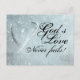 La postal El día de San Valentín "El amor de Dios nunca falla" representa un simple corazón dibujado a mano sobre vidrio esmerilado. El saludo de espalda puede ser personalizado y la tarjeta se puede usar para muchas ocasiones.
