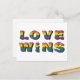 Difundir positividad e inclusión con esta vibrante postal "El amor gana". Con letras audaces de color arcoiris con un estilo retro y ondulado, este diseño celebra el poder del amor y la igualdad. Perfecto para el Mes del Orgullo, ocasiones especiales o el envío de notas de apoyo a sus seres queridos. Esta postal es un recordatorio alegre de que el amor realmente conquista a todos, haciéndolo un regalo significativo o un gran honor para los aliados y miembros de la comunidad LGBTQ+ por igual.