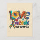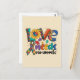 Comparte compasión y apoyo con esta postal de concienciación sobre el autismo "El amor no necesita palabras", que presenta un girasol vibrante, corazón y coloridas piezas de rompecabezas. Perfecto para las madres, profesores, defensores y cualquiera que celebre la aceptación del autismo.